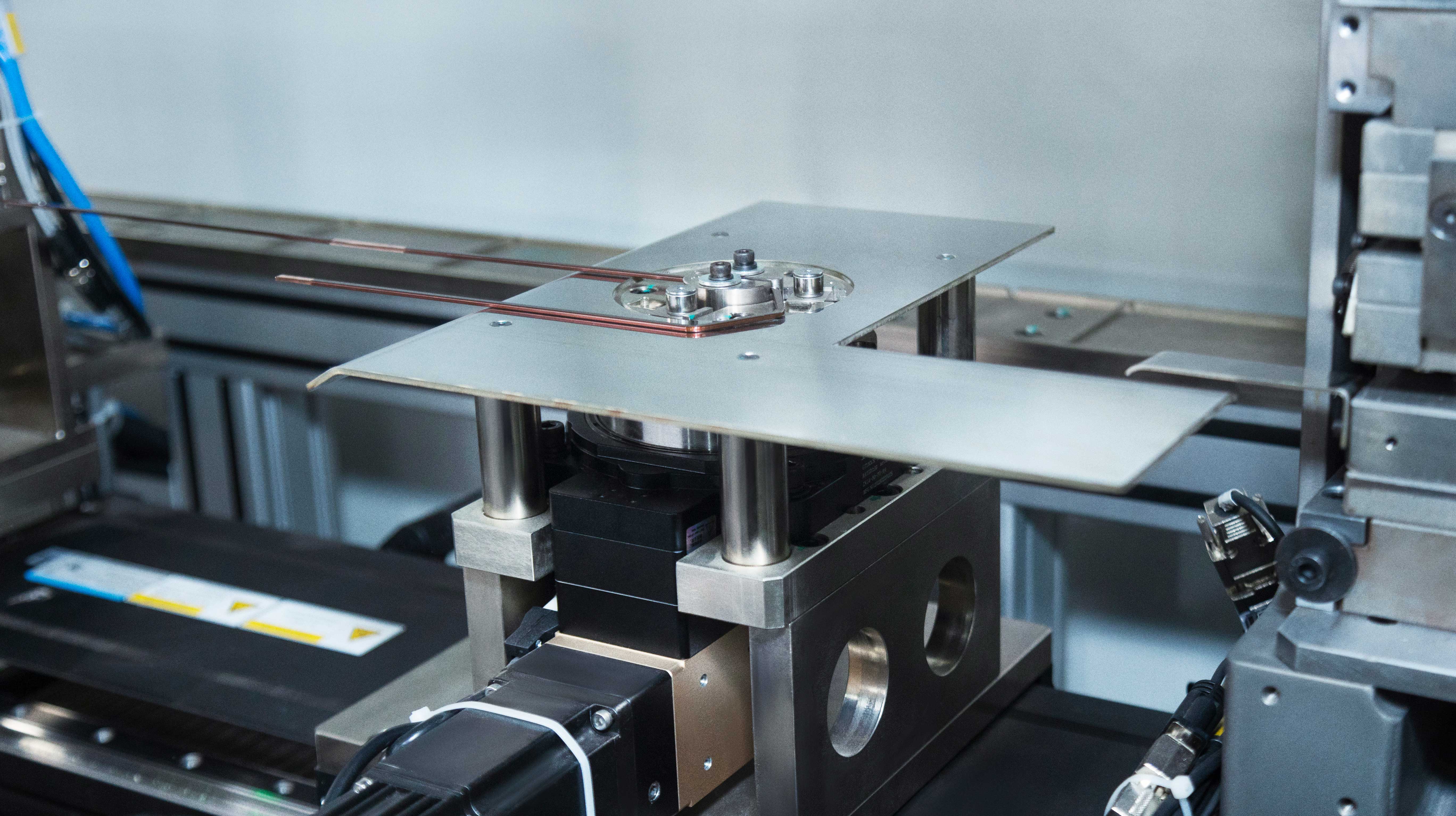 全自動成型機包括去漆、校直、斷線、成型部分,可以兼容生產定子中的所有線型,穩定的沖壓工藝保障了精準成型,在線漏電流全檢,為定子的生產提供高品質發卡線圈。